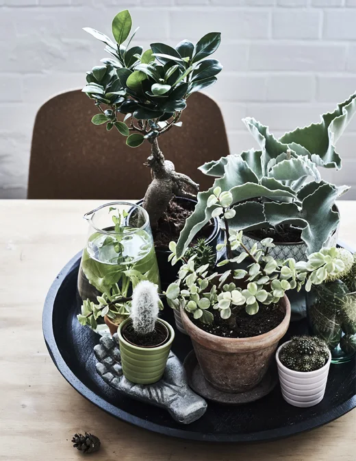 Retire partes das suas plantas favoritas e coloque-as num copo com água até que ganhem raízes. Nessa altura, as plantas estão prontas para replantar.